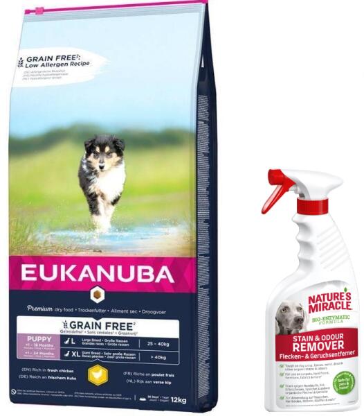 Eukanuba Puppy Large Grain Free Chicken 12kg - TermékleírásAz EUKANUBA Grain Free* friss csirkében gazdag eledel nagytestű és óriás fajtájú kölyökkutyák számára, amely támogatja a zsírmentes izomzat fenntartását. Az összetételben antioxidánsok és vitaminok is szerepelnek az immunrendszer megfelelő működéséhez, valamint gluténmentes* jamgyökér természetes rost- és