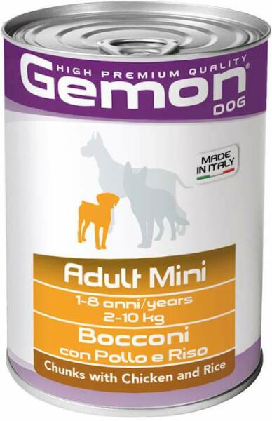 Kutya eledel GEMON Dog Adult Mini, csirke/rizs Teljes értékű, szaftos állateledel kistestű felnőtt kutyák számára. Ügyeljen arra, hogy bőséges tiszta ivóvíz mindig álljon rendelkezésre az állat számára. A termék első használatánál fokozatosan vezesse be az étrendbe legalább 1 hét alatt. Az eledel emberi fogyasztásra nem alkalmas. Felbontás után hűtőszekrényben tár