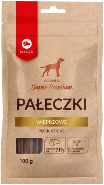 A sertéspálcika egy finom snack egy doprcated recept. Lágyságuknak köszönhetően minden kutya számára alkalmasak, húsos ízük és hívogató illatuk miatt pedig a kutyák szívesen fogyasztják őket. A jutalomfalat könnyen kisebb darabokra bontható, így ideális jutalomfalat a tréning során. Összetétel:Hús és állati eredetű termékek 91% (ebből sertéshús 71%), növényi er