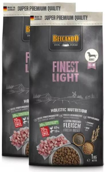 Finest Light 1kg Finom, laktató és egészséges, köszönhetően a válogatott nyersanyagoknak. Az ízletes kacsahús és máj meghozza a kutya étvágyát. Az egészséges zab elősegíti a teltségérzetet és gazdag létfontosságú zsírsavakban, úgy mint a zsályamag, amely a kiváló emésztésről gondoskodik. A csökkentett fehérje- és zsírtartalomnak köszönhetően a BELCANDO® FIN