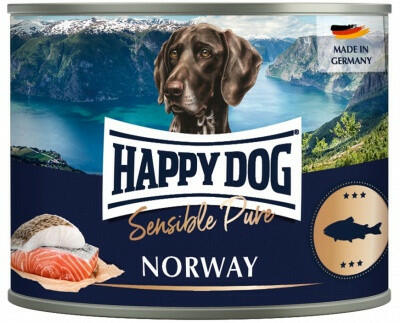 A Happy Dog Sensible Pure Norway - Lazachúsos konzerv kizárólag frissen vágott lazacból származó hús felhasználásával készül. A lazachúsos kutyatáp egy teljes értékű nedves eledel válogatott fehérjét tartalmaz, mely ideális táplálékintolerancia és allergia esetén egyaránt. Jellemzők: - Válogatott fehérje: 100% lazac - Gabona-, szója- és cukormentes - Hozáadott vit
