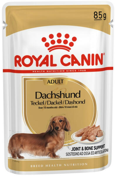 Teljes értékű táp felnőtt és idős Dachshund fajtájú kutyáknak - 10 hónapos kortól (pépes állagú). A csontszerkezet és ízület támogatása Támogatja a tacskó csontszerkezetének és az ízületek egészségének fenntartását. Jó izomtónus Segít fenntartani a tacskó izomtónusát. Étvágyserkentő hatás Segít kielégíteni a tacskó étvágyát. Különleges textúra Az