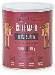 NATURECA Cons. marhahús májjal kutyáknak 800g, A marhahús májjal egy konzervdoboz, amely 30% májdarabokat tartalmaz, 70% durvára darált marhahúsba kézzel töltve. A kiváló minőségű 100%-os húskonzerv minden korú és fajtájú kutya számára alkalmas. Minden kutya- és macskakonzervünk természetes, színezék-, ízesítő-, tartósítószer-, vegyszer-, gabona- és szójamentes.