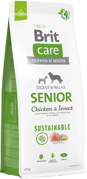 A Brit Care Sustainable Senior Chicken & Insect egy ínycsiklandó, teljes értékű csirkés-rovaros száraztáp idős kutyák számára. A Brit Care Sustainable Line minden tápja bolygó- és környezetbarát formula alapján készült és szuperprémium minőségű. Fenntartható fehérjéken és összetevőkön alapuló környezetbarát eledel, 35%-kal kisebb hatással a környezetre. Eze