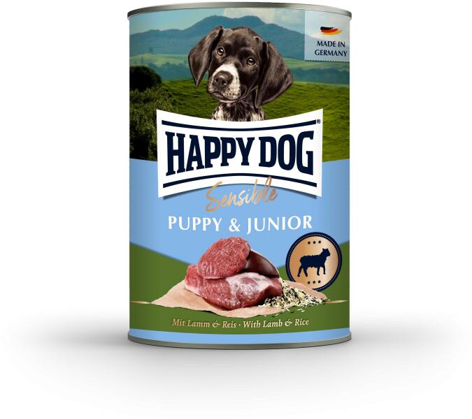 Minimum rendelhető mennyiség: 6 db - 8 hetes kortól - Gabonamentes - Nem tartalmaz cukrot - Gluténmentes - több, mint 90%-os fehérjetartalom Nedves állateledel báránnyal és rizzsel kutyák számára 8 hetes kortól. A Happy Dog Sensible Puppy & Junior nedves eledel kombinálja a bárányhúst és a könnyen emészthető rizst. A recept gluténmentes és nem tartalmaz hozzáadott cukr