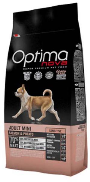 Az Optimanova Adu lt Mini Salmon & Potato egy ízletes, teljes értékű lazacos burgonyás száraztáp kistestű felnőtt kutyák számára. Kifejezetten kis testméretű érzékeny gyomrú kutyák számára kifejlesztett eledel. Kiválóan emészthető tápanyagok biztosítják a maximális felszívódást, így serkentve a kutyusok bélműködését és emésztését. Ínycsiklandó lazacos