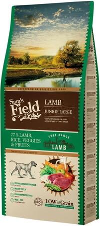 2.5kg Sam's Field Low Grain Junior Large Hypoallergenic Lamb egy fiatal nagytestű kutyáknak szánt teljesértékű szárazeledel. Hippoalergén formulájának köszönhetően az érzékeny emésztésű kedvencünk is fogyaszthatja. Magas gyümölcs és zöldség tartalma biztosítja a szükséges vitamin bevitelt, így erősíti és támogatja az immunrendszert és ápolja az izületeket.