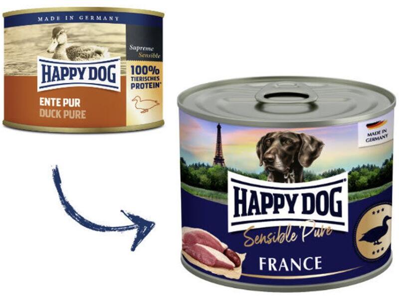 A Happy Dog Ente Pur France kacsahúsos konzerv kutyák számára, zöldségtartalom nélkül, hozzáadott vitaminokkal. ideális ételintoleranciák és allergiák esetén monoprotein - 100% kacsa ideális a Happy Dog Flocken Mixer pelyhekkel való keveréshez összetevők : hús és állati melléktermékek (70% - kacsaizom, kacsamáj, kacsaszív, kacsagyomor, kacsa nyak), ásványi anyagok Anal