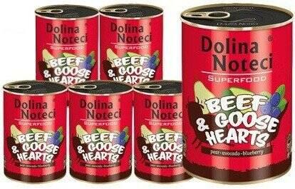 Dolina Noteci Superfood marhahús libaszívvel 800g - Leírás Nedvestáp minden fajta felnőtt kutyák számára, amely egyedülálló receptúrájának köszönheti különösen magas tápanyagtartalmát és fogyókúrát megelőző tulajdonságait. 80%-ban húst és állati eredetű termékeket tartalmaz (marhahús 40%, liba 40%, beleértve a libaszívet 26%). Friss gyümölcsöket és olyan te