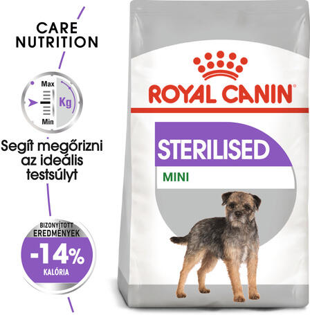16kg A Royal Canin Mini Sterilised egy teljesértékű táp felnőtt és idősödő, súlygyarapodásra hajlamos ivartalanított kutyák számára. Rostok optimális kombinációját tartalmazza a rendszeres és egészséges bélpasszázs biztosítása érdekében. Ez a formula szándékosan kisebb zsírtartalmú, hogy segítsen megakadályozni a plusz kilókkal járó egészségügyi komplikáci