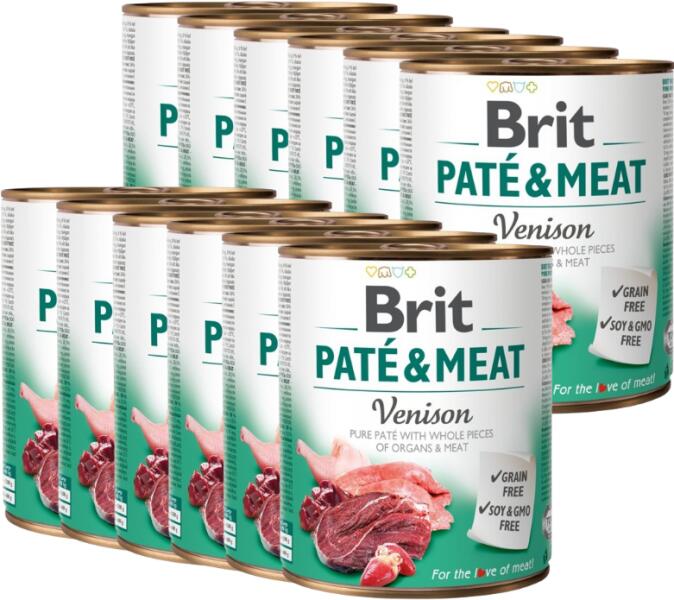 Brit Pate&Meat Adult Venison 800g - TermékleírásTeljes értékű nedves eledel vadhússal minden fajta felnőtt kutyának. Főszabály szerint kutyája étrendjének elsősorban száraztápra kell épülnie. Néha azonban a változatosság kedvéért érdemes nedves eledelt adni kedvencének. A nedves eledelnek sokkal magasabb a víztartalma, mint a száraz eledelnek, ezért pozitív hatás