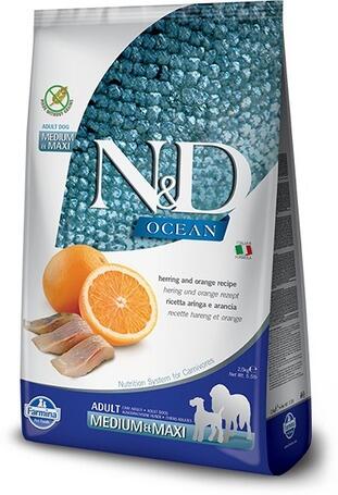 24kg Natural & Delicious Ocean Hal & Narancs Adult Medium & Maxi (Grain Free) gabona- és gluténmentes teljes értékű száraztáp közepes és nagy testű felnőtt kutyáknak hallal és naranccsal, mint fő összetevőkkel.