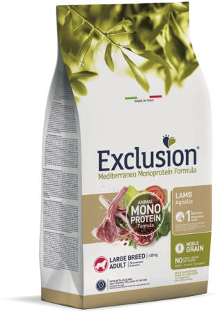A Mediterranean Exclusion Monoprotein Formula – Noble Grain egy teljes értékű és kiegyensúlyozott, egyetlen állati fehérjeforrás felhasználásával készített termékcsalád. ÖSSZETÉTEL: dehidratált bárányhús (26%), rizs, borsó, sertészsír, állati fehérje hidrolizátum alacsony molekula tömeggel, kender (1%), élesztő, dehidratált lucerna, szárított cikória (0,5%), ná