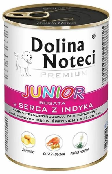 A Dolina Noteci Premium Junior teljes értékű, gabonamentes nedves eledel minden fajta fiatal kutyának, pulykaszívvel. a pulykahús és a belsőségek magas tápértékkel rendelkeznek, viszonylag alacsony kalóriatartalmúak, mégis laktatóak, és kiváló lizin-, triptofán-, metionin- és cisztinforrás biztosítja a csontok és a fogak ásványi anyagokkal való ellátottságát és a sze