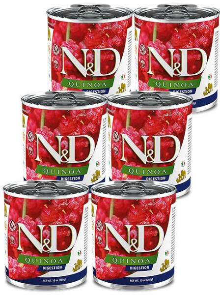 N&D Quinoa Gabonamentes nedveseledel konzerv emésztéssegítő 285g - 1600 Összetevőkről részletesen: E termék is gabona és gluténmentes. A benne található fehérje kizárólag állati eredetű, a megfelelő szénhidrátbevitelt pedig nem gabona, hanem más növények biztosítják, ezzel jobban illeszkedik a kutyák természetes, háziasításuk előtti időkre jellemző étrendjéh