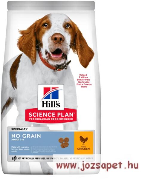 Hill's SP Canine Adult Nograin Chicken 14 kg gabonamentes kutyatáp Gabona és glutén nélkül készült az érzékeny gyomor számára, hozzáadott vitaminokkal és ásványi anyagokkal. Prebiotikumok az enyhe és egészséges emésztés elősegítésére. Omega 3 és 6 zsírsavakkal a szép szőrzetért Hill's SP Canine Adult Nograin Chicken 14 kg gabonamentes kutyatáp természetes összetevő