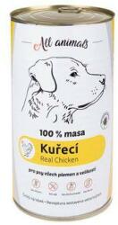 All Animals DOG csirke darált hús 1200g, Teljes értékű, gabonafélék nélküli nedves eledel a 100%-ban bejelentett állati fehérjeforrással. Máriatövisolaj hozzáadásával. Minőségi csirkehús, durvára őrölve, hozzáadott összetevők nélkül. Nem tartalmaz semmilyen kémiai vagy tartósító adalékanyagot. Alkalmas minden kutyafajta és korosztály számára. összetevők: csir
