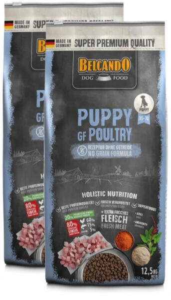 Puppy GF Baromfival 12,5kg Ajánlott valamennyi kutyafajta gabonára érzékeny kölykeinek 4 hónapos életkorig és egyben a kistestű kutyafajták növendékkori felnevelésére is. Az egészséges növekedéshez szükséges nagy energia tartalom és a csontképződéshez elengedhetetlen ásványi anyagok biztosítják az élet optimális kezdetét. Meleg vízzel elkeverve finom szósz keletkez