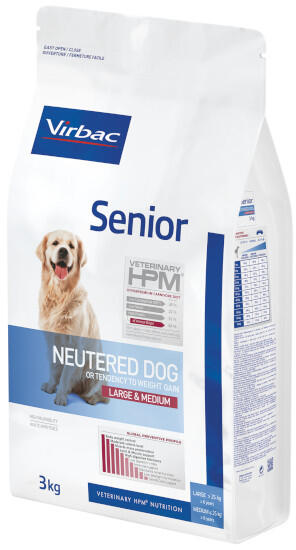 Teljes értékű étrend ivartalanított (illetve hízásra hajlamos), n agytestű fajtáknak (>25 kg) 6 éves kor után, k özepes testű fajtáknak (11-25 kg) 8 éves kor után. Idős kutyákban felgyorsulnak a sejtszintű öregedésért felelős oxidatív folyamatok. A fő szervi funkciók támogatásra szorulnak. Az ivartalanítás hajlamosít az elhízásra, a fizikai aktivitás csökken,
