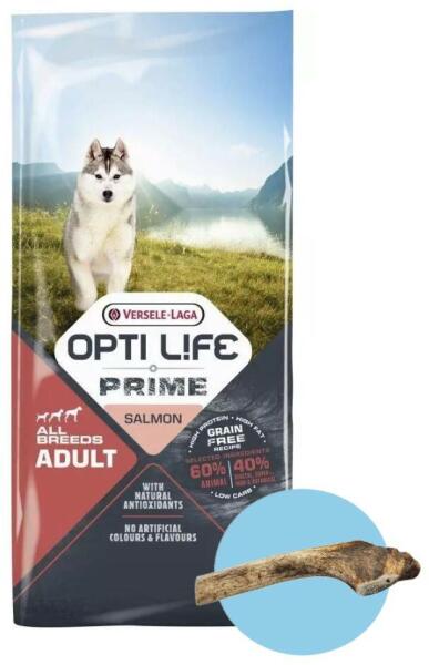 Versele-Laga Opti Life Prime Adult Salmon Gabonamentes takarmány felnőtt kutyáknak lazaccal 12,5 kg - Termékleírás Teljes értékű szárazeledel lazaccal minden fajta felnőtt kutyának. Az Opti Life Prime Adult Salmon termékkel a legmagasabb minőségű, értékes tápanyagokkal teli, teljes értékű és ízletes ételt biztosíthat kutyájának. Gabonamentes tápszerünk magas fehérje-