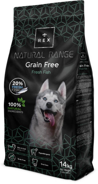 A Rex Natural Range Grain Free Fresh Fish teljes értékű hipoallergén gabonamentes szuperprémium állateledel a természetes táplálkozáshoz és gabona allergiára hajlamos kis-, közepes- és nagytestű kutyák számára. Ez a tápunk is a legoptimálisabb tápanyag összetételt biztosítja, etetésével minden nap teljes és kiegyensúlyozott étrendet biztosít kedvence számára.