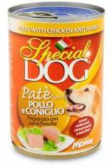Kutya eledel SPECIAL Dog Paté csirke-nyúl konzerv Teljes értékű pástétom felnőtt kutyáknak csirkével és nyúllal. Cukor és tartósítószer mentes. Ügyeljen arra, hogy bőséges tiszta ivóvíz mindig álljon rendelkezésre az állat számára. Az eledel emberi fogyasztásra nem alkalmas. Felbontás után hűvös helyen tárolandó. Kiszerelés: 400 g-os konzerv Összetevők - Hús é