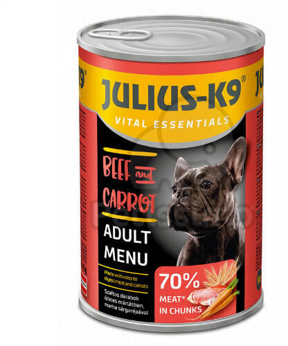 Teljes értékű eledel minden fajta felnőtt kutyának. Húspástétom belsőségekkel kutyáknak. Összetétel: marhahús 36%, marhahúsleves 35,5%, csirke 22%, belsőségek 4%, kollagén 1%, ásványi anyagok 1%, lazacolaj 0,5%.