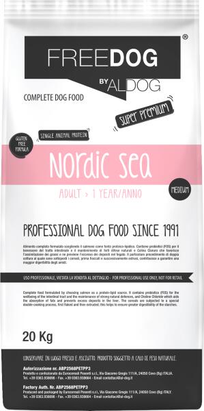 Free Dog Nordic Sea 20kg Tenyésztőknek ajánlott. Hypoallergén/Gluténmentes/ Csírkrehús valamint Csirkezsírmentes száraz eledel kedvence számára. Monoprotein (egy fehérjeforrást tartalmaz) teljesértékű táplálék , melynek állati fehérje, illetve zsítr forrása kizárólag a Lazac. A termékben megtalálható probiotikumok (F. O. S. ) a bélrendszer megfelelő működéséért f