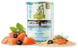 ISEGRIM kutya Junior lazac köles, áfonya és vadon termő gyógynövényekkel bal. 6 x 800 g-os konzervdoboz