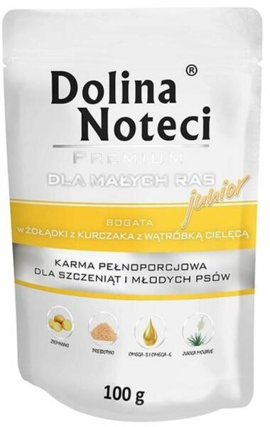 A Dolina Noteci Premium Junior Small Breed teljes értékű, gabonamentes nedves eledel fiatal, kistestű kutyák számára, csirkecombbal és borjúmájjal. A csirkehús és a belsőségek cink- és szelénforrást jelentenek - ezek az ásványi anyagok fontos szerepet játszanak a szervezet védekezőképességének serkentésében A borjúmáj szelént, vasat és rezet biztosít az eledel össz