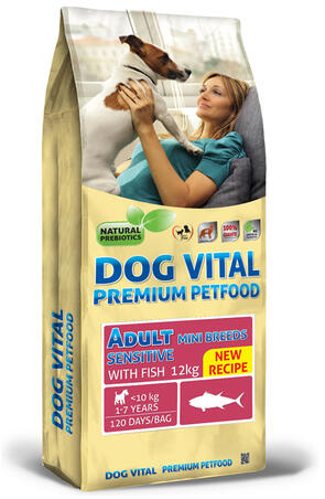 12kg A Dog Vital Sensitive Mini Breeds Fish egy teljes értékű kiegyensúlyozott eledel érzékeny emésztésű és válogatós felnőtt kistestű kutyák részére. Kiváló minőségű összetevői az eledelt kifejezetten ízletessé és könnyen emészthetővé teszik.
