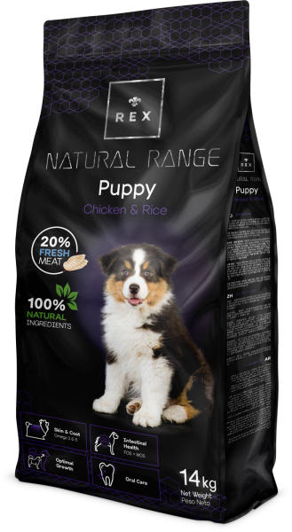 A REX NATURAL RANGE PUPPY a különböző fajtájú kölyökkutyák számára a legoptimálisabb tápanyag-összetételt biztosítja. Etetésével biztos lehet benne, hogy kiskutyájának minden nap teljes és kiegyensúlyozott étrendet biztosít.