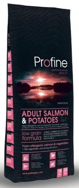 Profine Adult Salmon 3kg kutyatápAjánlott: Faj: KutyaKor: FelnőttMéret: Kistestű, Közepes testű, NagytestűSpeciális: Allergiás, Jellemzők: Száraztáp, Hipoallergén, PROFINE ADULT SALMON & POTATOES Hipoallergén kutyatáp, felnőtt kutyáknak, lazaccal és burgonyával. Választék: 3, 15kg Elsődlegesen étel-allergiával, táplálék–intoleranciával vagy emésztési problémá