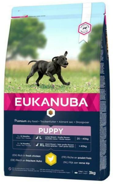 Az Eukanuba puppy large breed kifejezetten azon gazdiknak készült, akik a nagytermetű kölyökutyák szerelmesei. Legyen szó németjuhászról, labradorról, kuvaszról vagy bármely óriás bébiről, az eukanuba puppy large garantálja az egészséges növekedést és fejlődést. Nagy termetű kölyöknek mint például egy németjuhásznak 12 hónapos koráig, óriás termetűnek mint pél