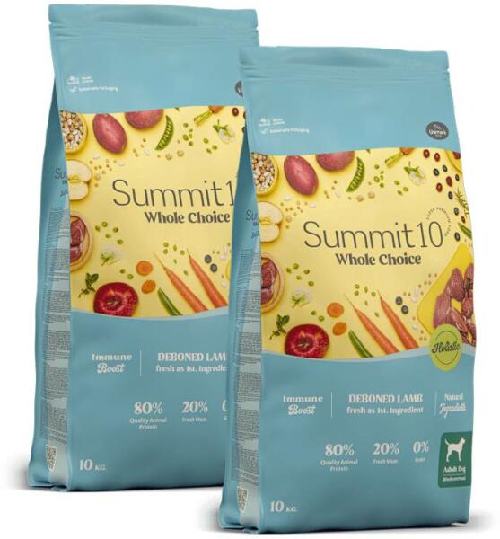 Summit 10 Whole Choice Adult Lamb 2x10kg Teljesértékű, gabonamentes száraz kutyatáp, friss bárány- és csirkehússal, felnőtt kutyáknak Ha egy olyan tápot keresel, amely nem csak minőségi és ízletes, de biztosítja kutyád egészségének fenntartását, akkor a Summit 10 Dog Whole Choice Adult Lamb a tökéletes választás. Miért ilyen különleges ez a kutyatáp? A Summit 10 Dog