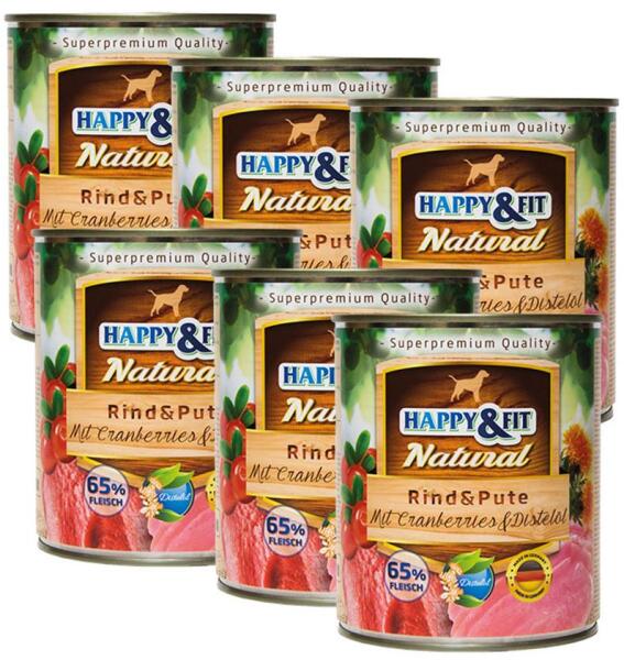 A Happy&Fit konzerv marha és pulykahússal, vörösáfonyával további jellemzői: Magas hústartalommal Ízletes, jó minőségű marha és pulykahússal és vörösáfonyával. Sáfrányos szeklice olajjal, amely többszörösen telítetlen zsírsavakat tartalmaz, jó hatással van a bőrre és méregtelenít. Német minőség: A Happy&Fit konzervek gondosan megválogatott alapanyagait