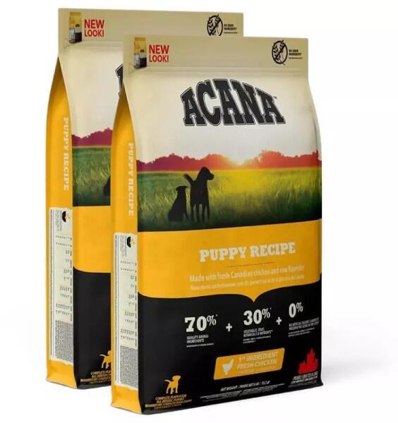 Acana Puppy & Junior száraz kutyatáp Az Acana Puppy & Junior száraztáp prémium-kölyöktáp kis és közepes termetű (felnőttként 9-25 kg súlyú) fajták kölykeinek: 70% állati fehérje - hús, hal és tojás, 30% gyümölcs, zöldség, növényi kivonat, EPA és DHA. Az Acana Puppy & Junior száraztáp receptúrája A kiváló minőségű Acana Puppy & Junior száraztá