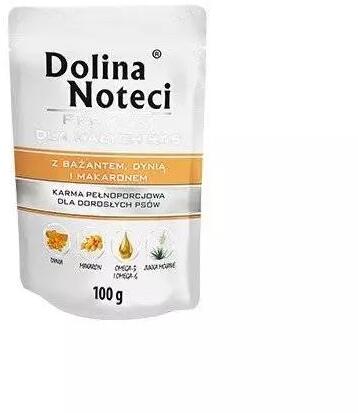 Dolina Noteci Premium kistestű kutyáknak fácánnal, sütőtökkel és tésztával 100g - TermékleírásTeljes értékű táp fácánnal, sütőtökkel és tésztával kistestű felnőtt kutyák számára. A finom fácánhús biztosan tetszeni fog kedvencünknek, emellett vasat, szelént, rézt, cinket és B12-vitamint is biztosít számára – olyan anyagokat, amelyek erősítik immunitását