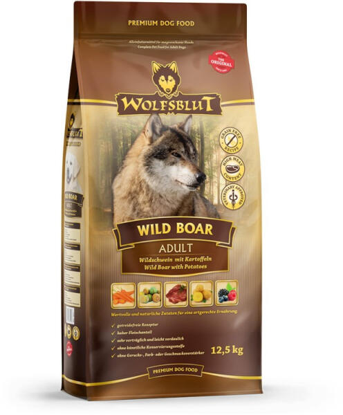 Kiszerelés: 2kg Wolfsblut Wild Boar Adult - Vaddisznó burgonyával Szuperprémium hipoallergén , gabonamentes kutyatáp friss és könnyen emészthető vaddisznó, vizibivalyhús , szeder, bodza, aróniabogyó, gyermekláncfű, csicsóka és ginzeng minden testméretű felnőtt kutya számára. Csirkehús mentes, csirkezsír mentes Friss és könnyen emészthető vaddisznó, mint fő összetev