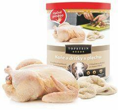 Topstein Csirke és pacal konzervdobozban 800g, Kiváló minőségű, kézzel töltött kutyakonzerv 100% állati fehérjét tartalmaz. A konzervek nem tartalmaznak mellékterméket, gabonát vagy szóját, színezéket, aromát vagy tartósítószert! Rendkívül ízletesek, és magas emészthetőség jellemzi őket. a dobozok kölyökkutyák, felnőtt kutyák és idősek számára egyaránt alka