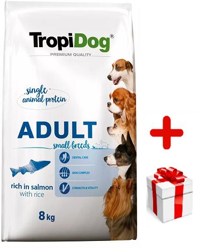 Tropidog Premium Adult Small Breeds lazac rizzsel 8kg - Termékleírás A TropiDog Premium Adult Small Breeds egy prémium lazacban gazdag, rizses eledel felnőtt kistestű kutyák számára (10 hónapos kortól). Jól emészthető lazacfehérjét és lazacolajat, valamint zöldségeket, gyümölcsöket és hínármoszatot tartalmaz. Ez az optimálisan kiegyensúlyozott eledel kielégíti a kistes