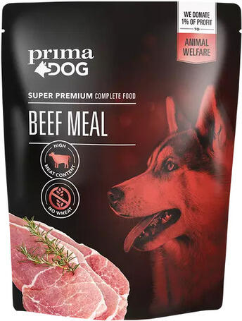 1.56kg A Primadog Beef Meal egy teljesértékű nedvestáp felnőtt kutyák számára, ízletes marhahússal és rizzsel. Gluténmentes eledel, így érzékeny emésztésű kutyák is fogyaszthatják.