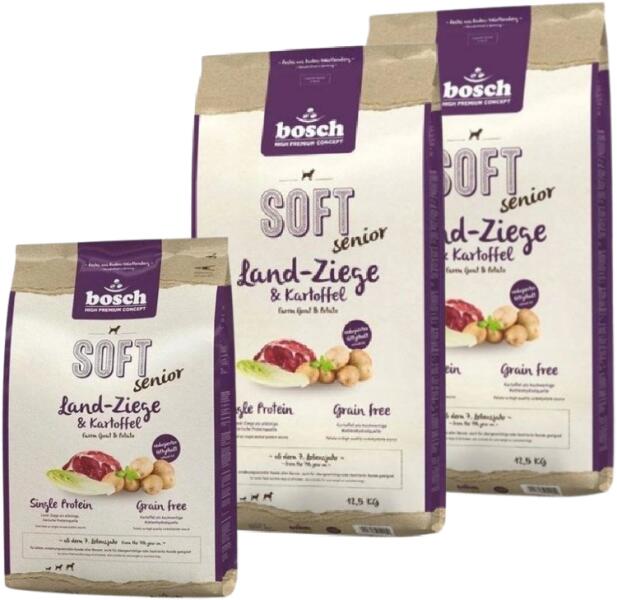 BOSCH Soft Senior Goat & Potato 12.5kg - Termékleírás Ez az eledel fajtától függetlenül 7 évesnél idősebb kutyáknak készült, kecskehússal és burgonyával. Mivel az élelmiszer összetétele nem tartalmaz gabonaféléket, az érzékeny szervezetekre nézve biztonságos. Kíméletes és könnyen emészthető, ezért nem ró további terhelést a kutya szervezetére. Csökkentett z