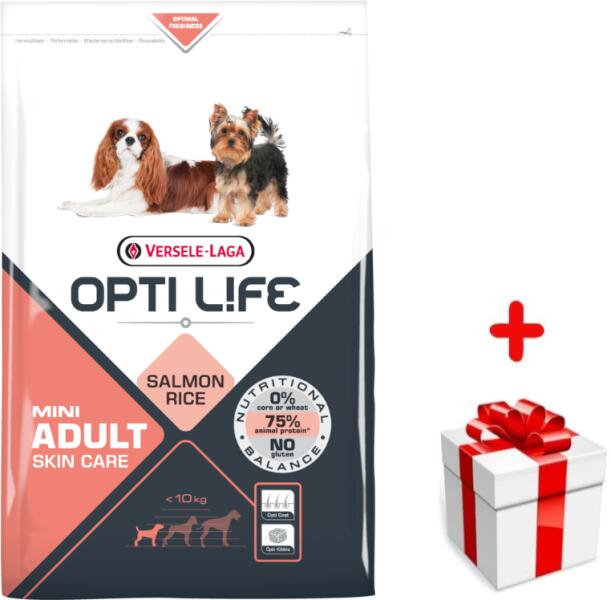 Versele-Laga Opti Life felnőtt bőrápoló Mini lazaccal 2,5 kg - Termékleírás Az Opti Life Adult Skin Care Mini egy tökéletesen kiegyensúlyozott, lazac- és rizs alapú eledel, amelyet a felnőtt kistestű kutyák egészséges bőrének és fényes szőrzetének biztosítására fejlesztettek ki. Az eledelben lévő fehérje 75%-a állati eredetű, ami a rizzsel együtt biztosítja a könn
