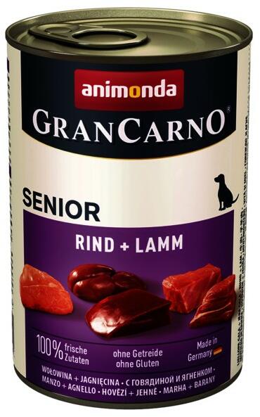 Animonda GranCarno Senior Marha bárány konzerv - Prémium minőségű nedvestáp Szívdarabokkal, kis, közepes és nagytermetű idős kutyák részére. Összetevők: 33% marha (szív, tőgy, vese, színhús), 31% húsleves, 20% borjú (tüdő, szív), 15% birkamáj, Kalcium-karbonát Analitikai összetevők: Fehérje: 10,5%, Zsír: 7%, Nyersrost: 0,4%, Nyershamu: 2%, Nedvesség: 79% Ásványi