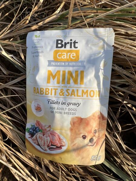 A Brit Care Mini Rabbit & Salmon fillets in gravy 85 g ínycsiklandó pástétom kistestű kutyáknak. Lágy nyúl- és lazachúsfilé ízletes szaftban, természetes összetevőkkel. A Brit Care Mini Rabbit & Salmon fillets in gravy 85 g különleges pástétom kifejezetten kistestű kutyák számára, amely kielégíti még a legválogatósabb kedvencek ízlését is. Friss nyúl- és la