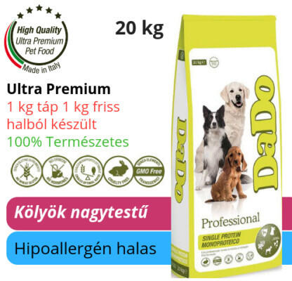 A DaDo Hipoallergén halas kölyök kutyatáp az allergiára és érzékenységre hajlamos kölyökkutyák számára lett kifejlesztve, hogy speciális igényeiknek megfelelően gondoskodhassunk róluk már egészen kicsi koruktól. A DaDo Hipoallergén halas kölyök kutyatáp megelőzi a táplálék allergia kialakulását, illetve ha már kialakult az érzékenység vagy már jelentkeztek az al