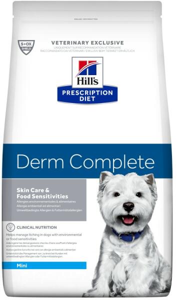 Gyógytáp, melyet kifejezetten kutyák környezeti és eleségallergiáinak kezelésére fejlesztettek ki. A Hill's PRESCRIPTION DIET Derm Complete kutyaeledel minden tápanyagot biztosít, melyre kutyájának szüksége van és hosszú távon is alkalmazható. Ez a szárazeledel finom összetevőkből készült és olyan ellenállhatatlan ízű, amit a kutyák imádnak. Így működik: Korlátoz