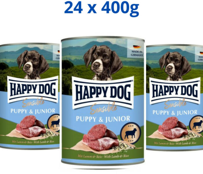 - 8 hetes kortól - Gabonamentes - Nem tartalmaz cukrot - Gluténmentes - több, mint 90%-os fehérjetartalom Nedves állateledel báránnyal és rizzsel kutyák számára 8 hetes kortól. A Happy Dog Sensible Puppy & Junior nedves eledel kombinálja a bárányhúst és a könnyen emészthető rizst. A recept gluténmentes és nem tartalmaz hozzáadott cukrot. Több mint 90%-os állati fehérj