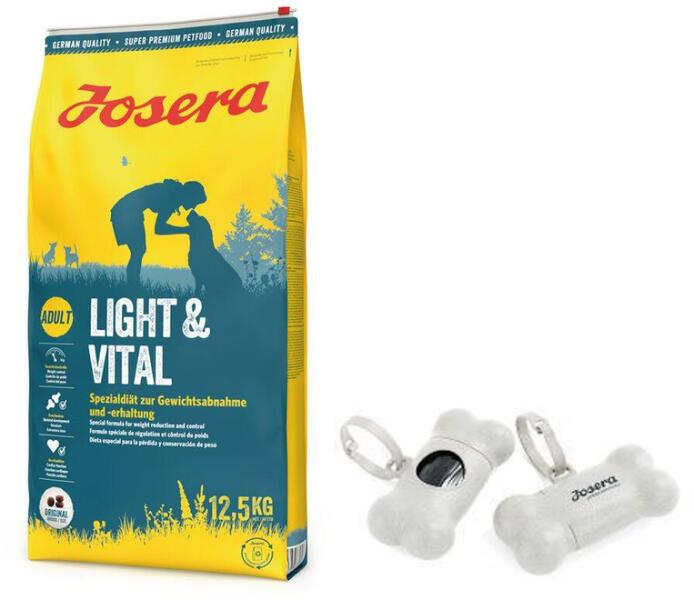 Josera LIGHT & VITAL Szuper prémium kutyatáp Kor: Felnőtt Méret: miniatűr kis fajta közepes nagy óriás Pellet mérete: méret: ~1,33 cm FINOM BAROMFIVAL ALACSONY ZSÍRTARTALOMMAL (7,5%) A KUTYA JOBB SÚLYKONTROLLJA ÉRDEKÉBEN TÁMOGATJA AZ IGÉNYBEVETT ÍZÜLETEKET Josera LIGHT & VITAL DIÉTÁS ELEDEL FELNŐTT KUTYÁKNAK A hízásra hajlamos vagy túlsúlyos kutyák számára. A c